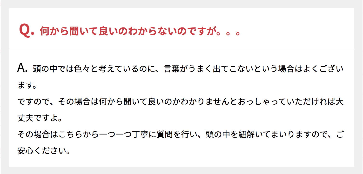 面談に取り組むにあたって、事前に課題に対する情報を頂いておきますと、より最適な解決案をご提示することが可能となりますので、下記フォームより、ご相談内容を記載して頂けると幸いでございます。